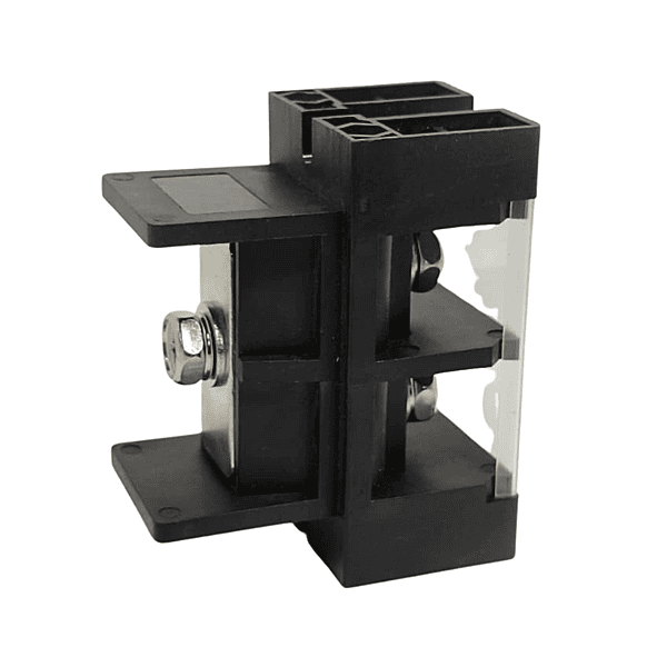 ESS(FENCE TERMINAL-200A)1IN-2OUT(BLACK) is a black high-current fence-style terminal block for energy storage systems (ESS), featuring 1 input and 2 outputs with 200A rating for distributing power from batteries to controllers or inverters in electric scooters and solar setups. Constructed from corrosion-resistant materials like nickel-plated brass or copper, it ensures low-resistance connections, vibration-proof mounting, and safe operation up to 1000V DC. Key Specifications Rating: 200A continuous current, 1000-1500V DC; wire compatibility up to 50mm² (0000 AWG). Configuration: 1 IN - 2 OUT; screw/bolt-down or crimp termination, panel/DIN rail mount. Features: IP67 waterproof option, -40°C to 125°C temp range, contact resistance ≤0.5mΩ; black housing for discreet ESS integration.