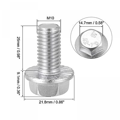 A Bolt - Hex Flange M10x25 is a metric fastener commonly used in automotive, industrial, and EV applications for its high strength and built-in washer-like flange that distributes load and prevents loosening. Key Features Size: M10 diameter, 25 mm length, 1.5 mm thread pitch. Flange Diameter: 22.3 mm, providing a broad bearing surface. Material: Typically Class 10.9 alloy steel (quenched and tempered), offering high tensile strength (min 1,040 MPa). Standard: DIN 6921, ISO 4017. Head Style: Hex flange, easy to tighten with a standard 15 mm spanner.
